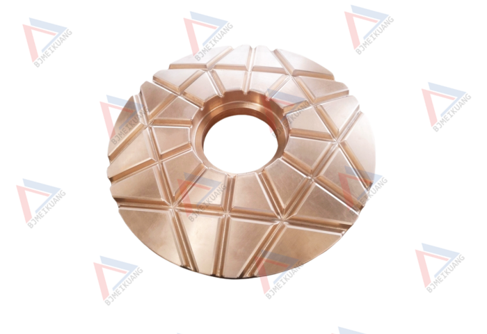 止推軸承上盤大量應用于礦山、工程骨料設備圓錐破上,屬于圓錐破上面主要的傳動及耐磨零件,配合止推軸承中盤、下盤使用,在主機運轉上下調節排礦口時,避免主軸與液壓缸上部直接接觸磨損,大大提升液壓缸和主軸的使用壽命。
